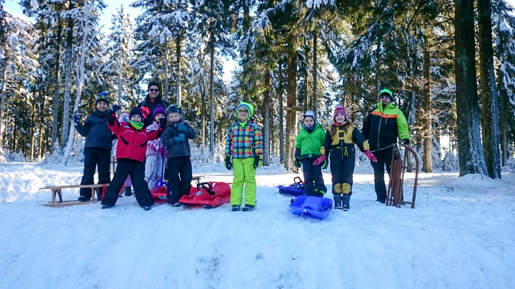 Der erste Teil des Weges war leider etwas zäh - durch den aufgewühlten Schnee mussten die Schlitten leider gezogen werden. Am Fuchstanz wurde daher der erstbeste gut befahrbare Weg genutzt, um mehrfach herunter zu sausen.